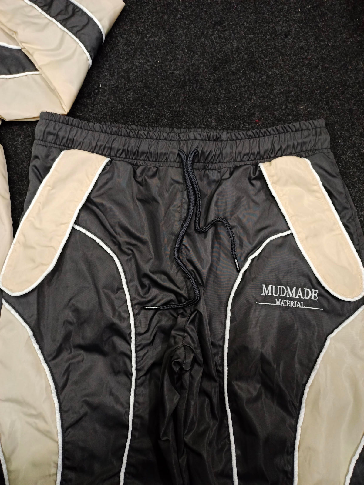 Designed with a sleek athletic silhouette, the set includes a full zip-up jacket and matching track pants with contrast paneling that brings a bold, sculpted look. Each piece is finished with our embroidered Mudmade Material logo, adding that elevated, signature touch of authenticity.